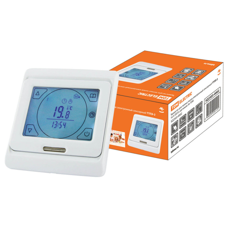 Термостат для теплых полов электронный сенсорный ТТПЭ-2 16А 250В с датчиком 3м TDM