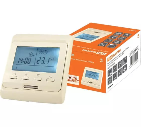 Термостат для теплых полов электронный ТТПЭ-1 16А 250В с датчиком 3м сл. костьTDM