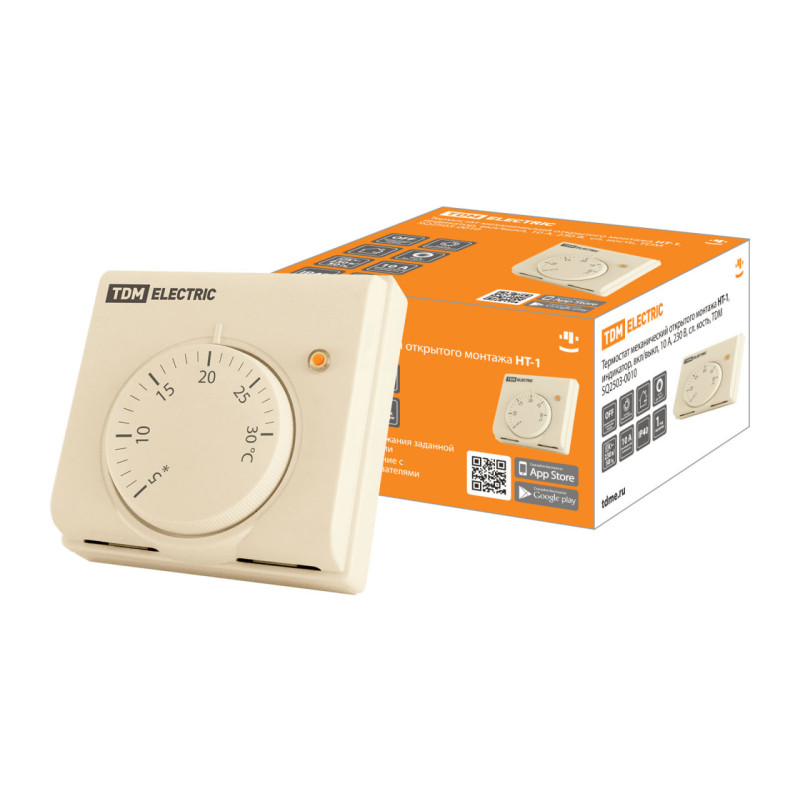Термостат механический открытого монтажа НТ-1, индикатор, вкл/выкл, 10 А, 230 В, сл. кость, TDM