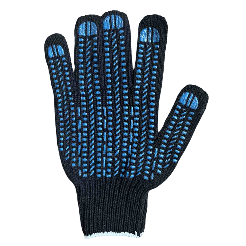 Перчатки х/б 7,5кл 6-нитка с ПВХ ЧЕРНАЯ ПРОТЕКТОР БЕЗ МАРКИРОВКИ