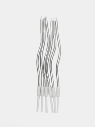Свечи для торта "Серпантин" 6 шт, коктейльные, серебристые /2