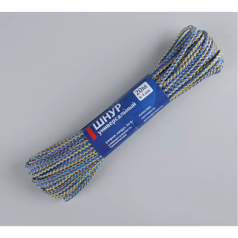 Шнур универсальный, d = 4мм., материал-полипропилен, с сердечником, 20 м