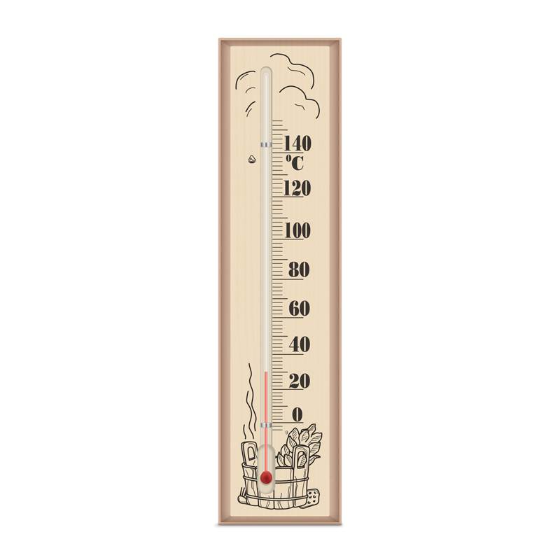 Термометр показывает температруру в парном помещении во время банных процедур. Не содержит ртути. Диапазон измерения температуры 0...+150 C.