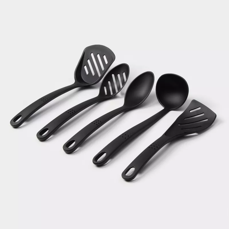 Набор кухонных принадлежностей Доляна «Точки», 5 предметов, цвет чёрный