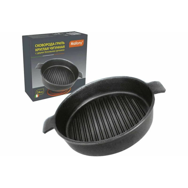 Сковорода-гриль круглая чугунная CH24, диа 24 см (2 боковые ручки)