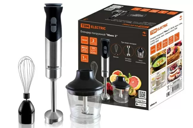 Блендер погружной "Микс 3", 700 Вт, нерж. сталь, 2 скор., венчик, чаша - измельчитель,TDM 1/1