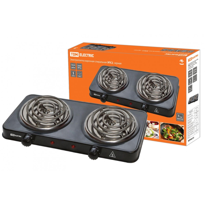 Электроплитка двухконф. ЭПС2 230 В, 2х1 кВт, спираль, черная, TDM 1/6
