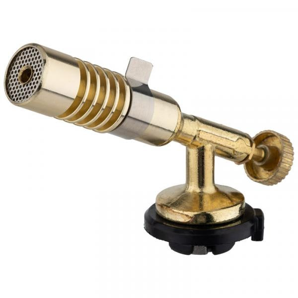 Портативная газовая горелка Форма горелки - прямая Вес нетто 56гр, Размер изделия: 110*40*40мм, диаметр сопла: 16,49мм длина сопла 55 мм Тип соединения- цанговое Тип топлива - Пропан-бутановая смесь или изобутан Тип зажигания - ручной Мощность: 4700BTU/1.4Квт Максимальная температура пламени - 1300°C.